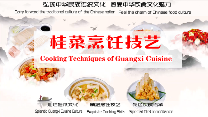 桂菜即广西菜,依据《T/GXPX 001-2020 桂菜标准体系》,桂菜被分为桂北、桂西、桂东南与滨海等四个风味,对接“中式烹调师”职业标准及岗位需求,坚持传承和发扬桂菜文化,反映桂菜发展中的新知识、新技术、新工艺和新方法要求,遴选60个典型任务(代表性菜肴)作为本课程的主要教学内容。